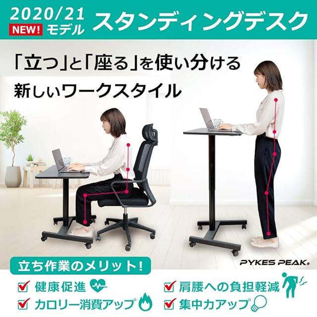 PYKES PEAK (パイクスピーク) スタンディングデスク 高さ調整 昇降式 70-110cm ガス圧 無段階昇降 伸縮 小さめ キャスター付き ワンタッチ昇降 耐荷重 30kg 昇降デスク 昇降テーブル 昇降式テーブル PCデスク 4色【アイボリーホワイト】