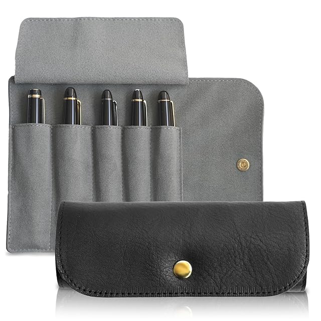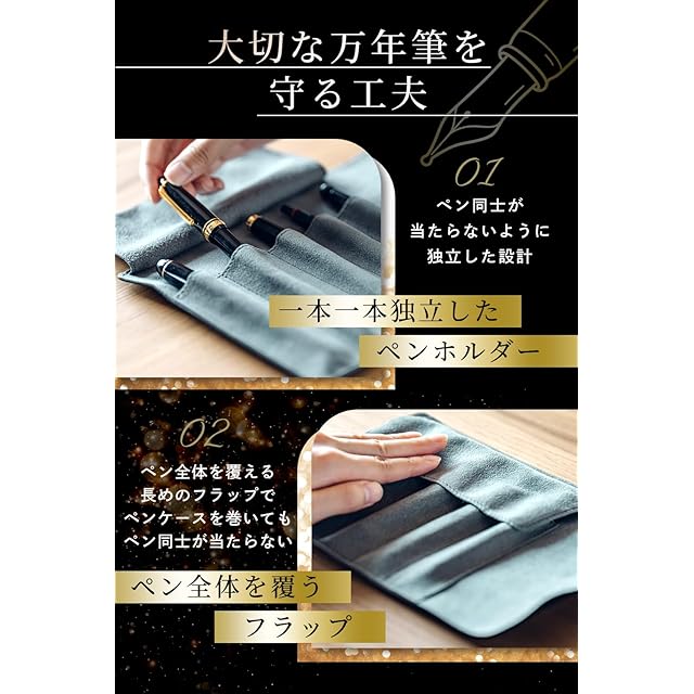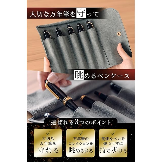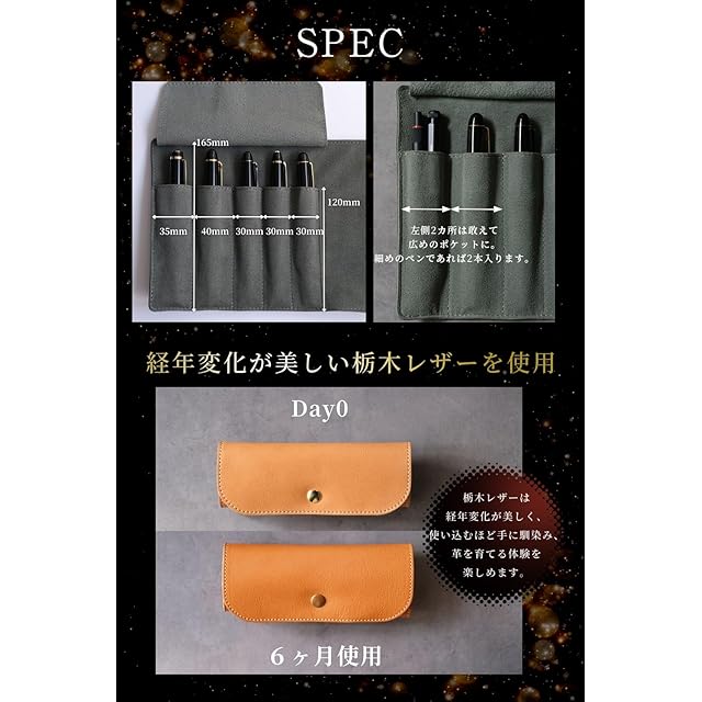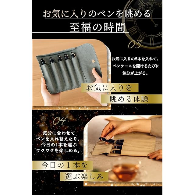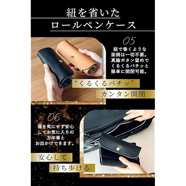 &Liebe 大切なペンを守って魅せるロールペンケース 万年筆を守る 栃木レザー 日本製 (ブラック)