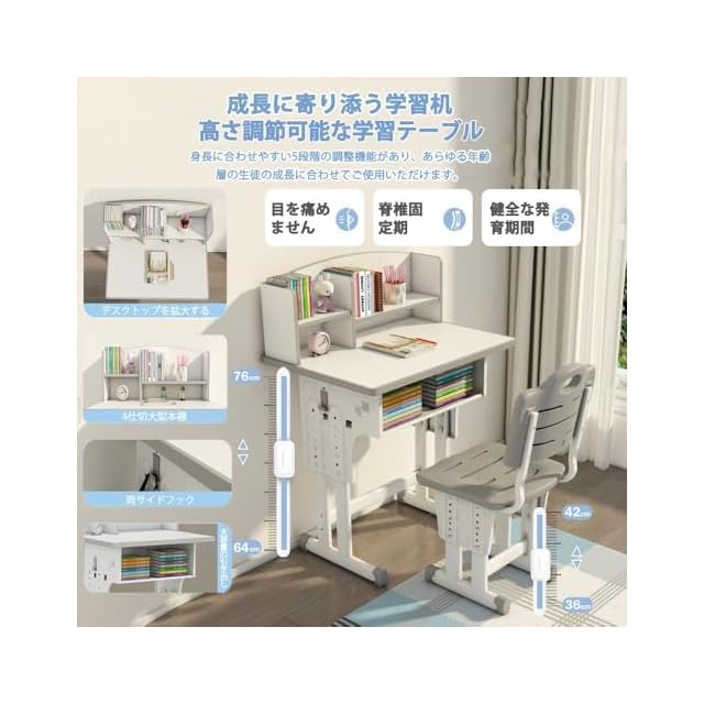 【視力低下防止】この勉強机は、適切な座位が背骨の整形のために非常に重要であるとして、適切な身体の位置を提供するための環境を構築します。正確距離は、目の疲労を軽減し、保護、目に役立ちますすることができます。