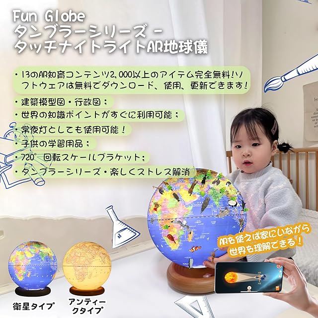 【3WAY&プレゼントにオススメ】本商品は地球儀、ベッドサイドランプ、知育玩具等としてもご使用頂けますので、ご家族はもちろん、大切な方への素晴らしい贈り物となることでしょう。 老若男女を問わず楽しめますので、誕生日、クリスマス、父の日、母の日、ハロウィン、バレンタインなどのプレゼントにもおすすめです。ご注意:AR機能の操作方法についてメールで送りますので、弊店の商品をご購入した後、ぜひメールをご確認ください それにもし届いた商品について、初期不良等の問題があった場合、 御遠慮なく直接にこのメール「[email protected]」にご連絡ください。 ご連絡いただければ、24時間以内に返金.返品交換を承諾いたします。 ご安心くださいませ。