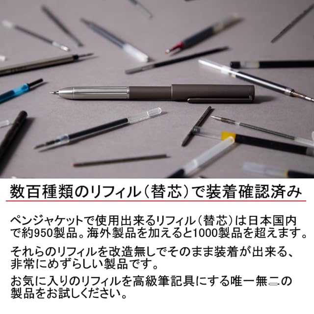 ペンジャケットで使⽤できるリフィル(替芯)は無改造のまま⽇本製品で約950、海外製品を加えると1000を超えます。