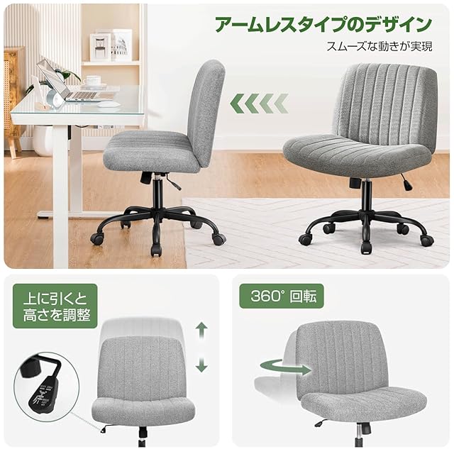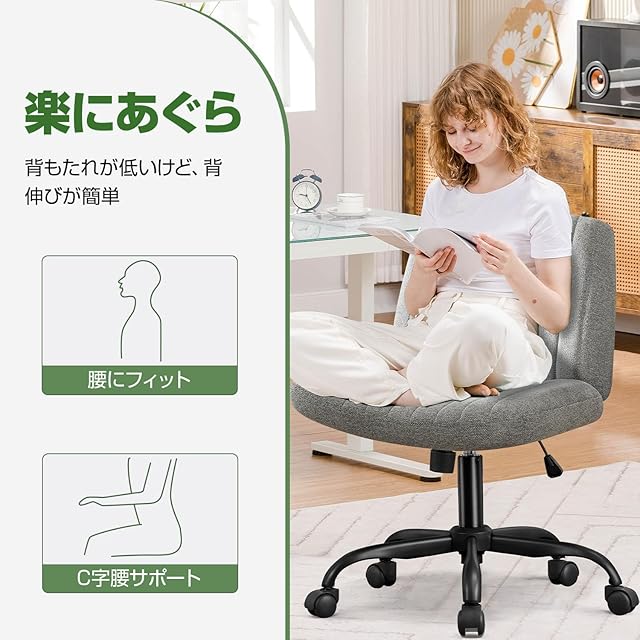 COMHOMA デスクチェア あぐら ソファチェア オフィスチェア 疲れない椅子 ファブリック 90°~130°ロッキング角度 座面広い ホイール付き回転 10cm高さ調節可能肘掛けなし 軽快な小型のソファ 一人掛け 小さなスペース GRAY