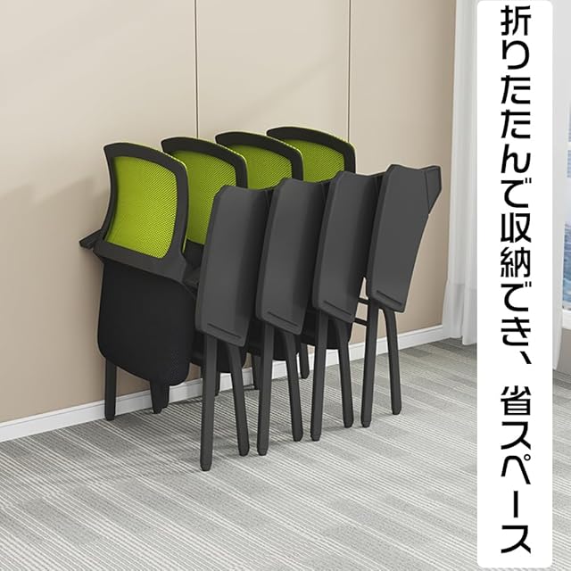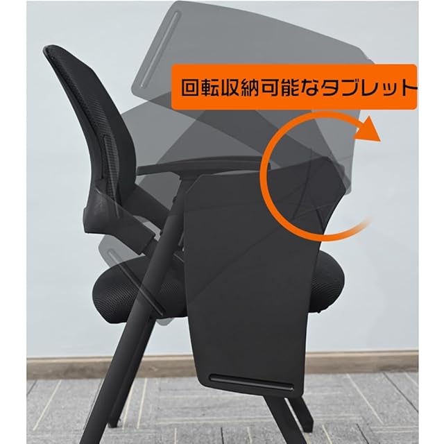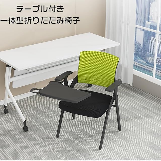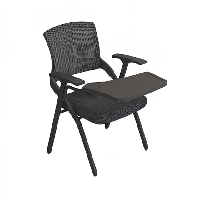 Fuyutu オフィスチェア ミーティングチェア テーブル付き 折りたたみ 事務椅子 テーブル一体型 軽量 持ち運び 折り畳み可能 パイプ椅子 メモ台付き アームレスト コンパクト収納 通気性 オフィス 会社 会議 講習 組立簡単 (テーブル付き, ブラック)