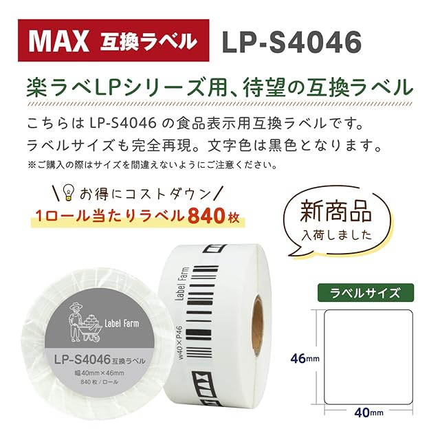 【ラベルファーム】LP-S4046 マックス 互換食品表示ラベル40mm x 46mm 楽ラベ LPシリーズ (10ロール)