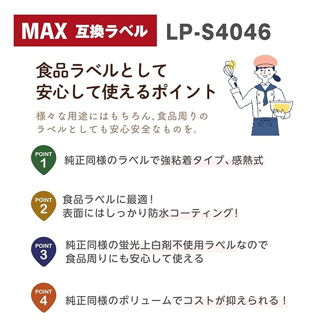 【商品内容】マックス MAX 楽ラベ LPシリーズ LP-S4046 互換ラベル 食品表示用感熱紙タイプ 防水コーティング。