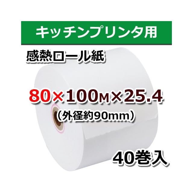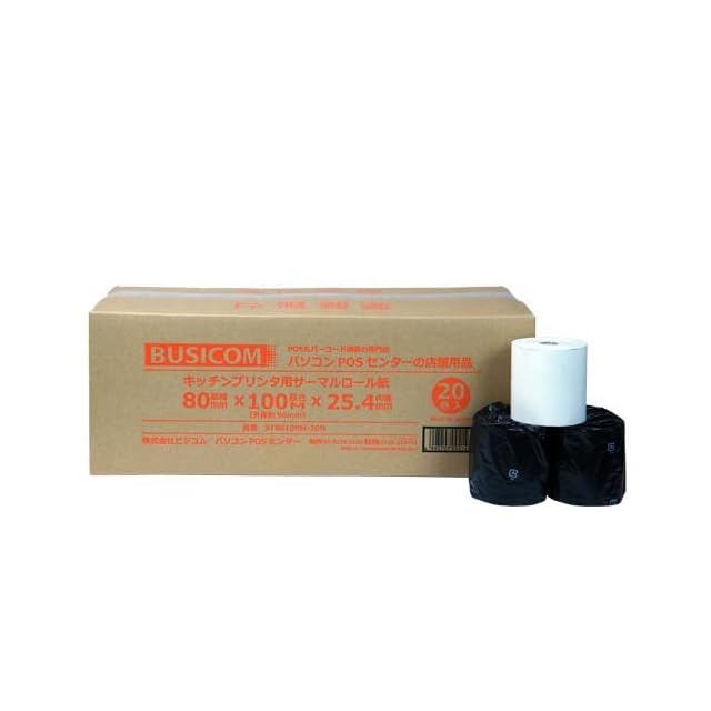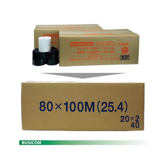 ビジコム 80mm×100M(外径約90mm) 感熱ロール紙 40巻セット KCP-100対応 ST80100M-20N-2