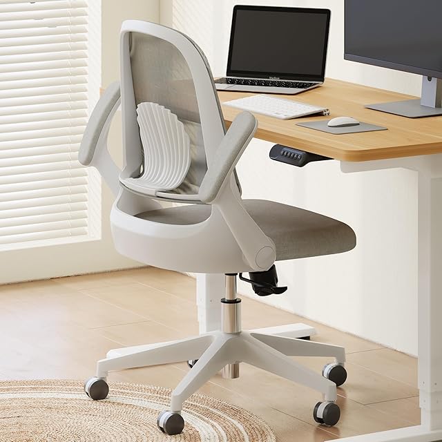 FLEXISPOT オフィスチェア デスクチェア OC5 肘跳ね上げ式 ランバーサポート付き メッシュ ウレタンフォーム ロッキング可能 学習椅子 勉強椅子 かわいい (グレー)