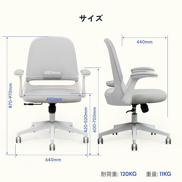 【オフィスチェアOC5・仕様】◎サイズ:幅49cm×奥行44cm×高さ87~97cm(座面高さ42~52cm) ◎カラー:ブラック、グレー ◎ロッキング角度:130度 ◎素材:メッシュ、ウレタンフォーム ◎耐荷重:135kg ◎重量:10.5kg ◎保証年数:3年