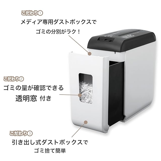 デスクサイドにピッタリなコンパクトサイズ細断屑を捨てやすい引き出し式シュレッダー