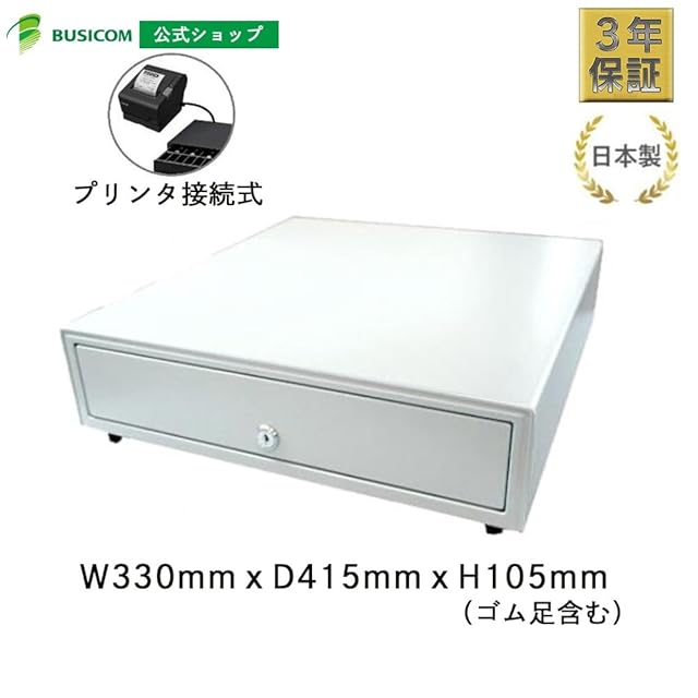 ビジコム 3年保証 国産 プリンター接続式 キャッシュドロア W330×D415×H105 小型 M 紙幣3種 硬貨6種 白 BC-415M-W(6C)