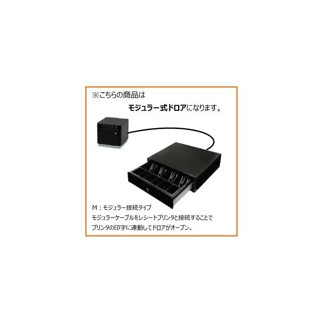 【プリンター接続式】各種POSプリンタ(ドロアキック内蔵機構付きプリンタ)とモジュラーケーブルで接続するタイプのドロアです。プリンタ側の命令によりオープンします。