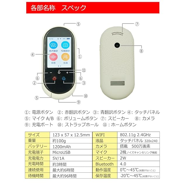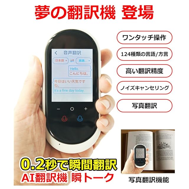 翻訳機 0.2秒で 瞬間 翻訳 最新 瞬トーク 106種類 の 言語 方言 に対応 双方向 通訳機 海外旅行 外国人観光客 に オススメ 操作簡単 ボタンひとつで 高性能 AI翻訳 WIFI オフライン 辞書ダウンロード 中国語 英語 ベトナム語 など SIM なしモデル Wi-FI