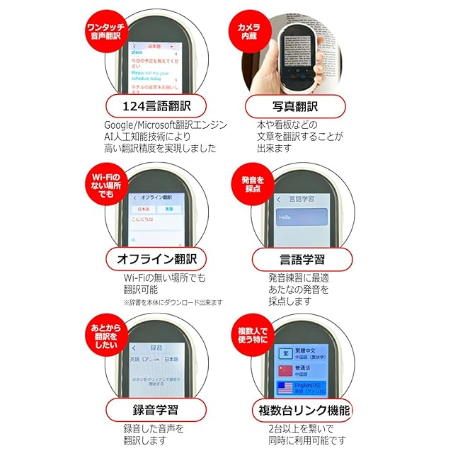 本語 英語 中国語 韓国語 などなど 方言 含めて 124言語に対応し、世界中に207ヵ国で使用されている 通訳機 です。 この価格なら レンタル するよりお得です