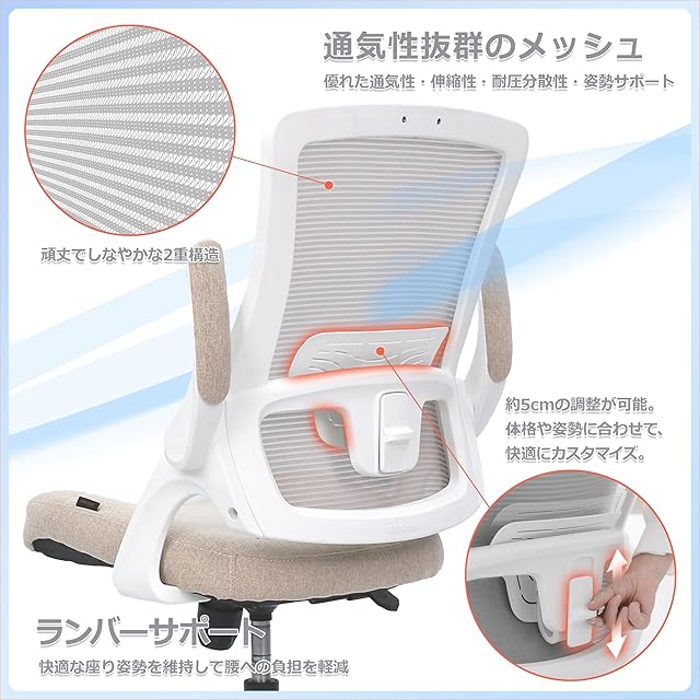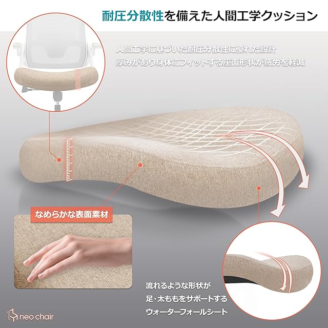 体圧分散座面 NEOCHAIR オフィスチェア デスクチェア メッシュ 通気性 腰痛予防 ランバーサポート 低反発クッション 跳ね上げ式アームレスト おしゃれカラー 疲れにくい DBS ベージュ