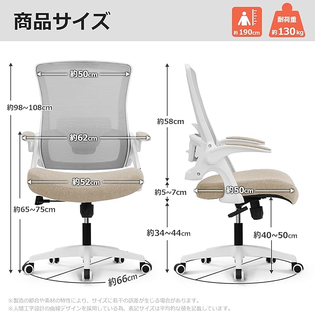 【商品サイズ・機能】座面サイズ:約幅52cm×奥行き48cm / 背もたれサイズ:約幅50cm×高さ58cm / アームレスト:跳ね上げ式