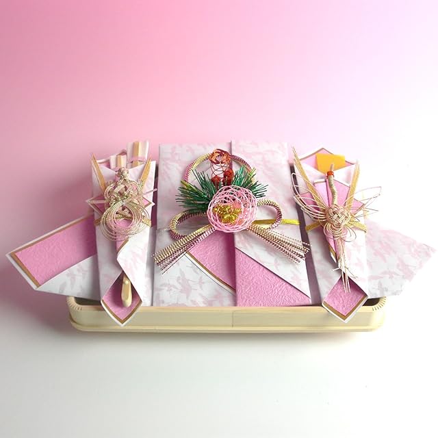 食事会形式の略式結納などにぴったりな手渡しタイプのセットです。可愛らしいピンクのスイートピーをイメージしてみました。