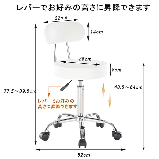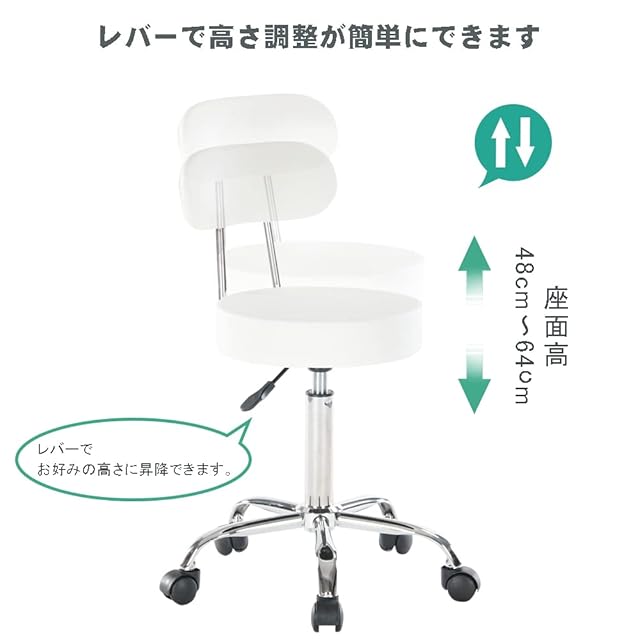 Altrobene 丸椅子 背もたれ付き カウンターチェア キャスター付き 昇降式 スツール 座り心地がいい 高さ調整 椅子 360°回転 診察椅子 キッチン 台所仕事 チェア ホワイト