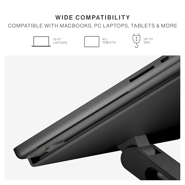 幅広い互換性: MacBook、MacBook Air、MacBook Pro、Microsoft Surface、Lenovo ThinkPad、Dell、HP、Chromebookなど、5kgまでのすべてのラップトップとタブレットに対応しています。