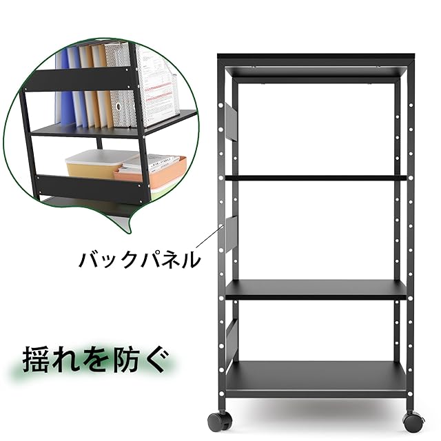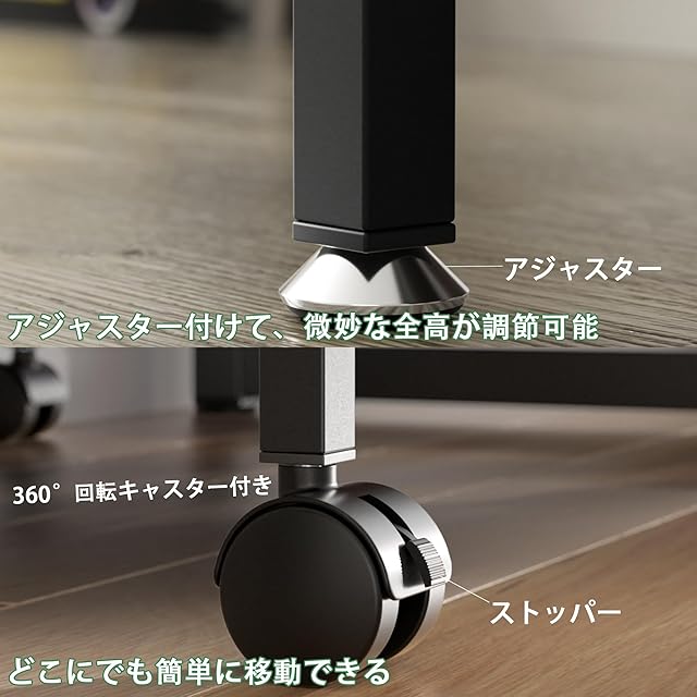 ✅【アジャスター付き&調整可能な中棚板】★2枚の中棚の位置は6.5cm間隔で12段階の上下調節が可能です。収納する機器や小物のサイズに合わせて変更できます。横揺れなどのぐらつきを防ぐ、バックパネルを搭載しています。★アジャスター付けて、微妙な全高が調節可能です。