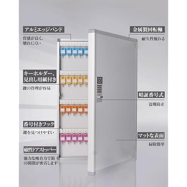 【鍵の管理が容易】キーホルダーの中には、書き込み可能な見出し用紙が付いており、どの鍵か一目でわかるように管理ができます。また、各フックには番号が付いており、鍵を見つけやすくなっています。
