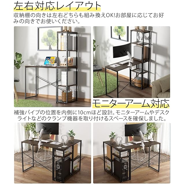 ゲーミングデスク l字デスク デスク DEWEL パソコンデスク 3点セット L字型 幅80cm~128cm 奥行40cm~80cm 高さ70cm 総耐荷重160kg コーナーデスク 9段階調節 可動棚付き ラック付き ユニットデスク おしゃれ ワークデスク 棚 棚付き 組み替え 勉強机 コンパクト シンプル 組み合わせ