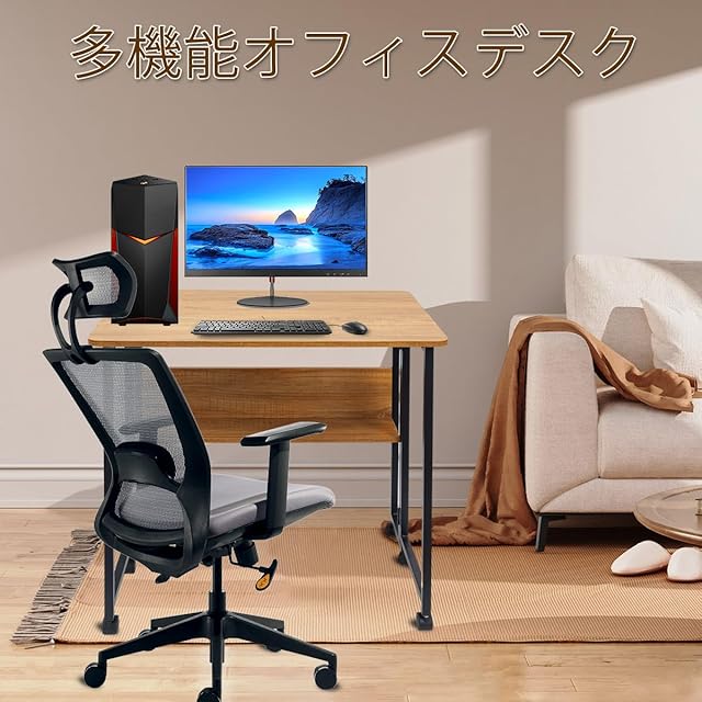 折りたたみ机 PCデスク パソコンデスク デスク キャスター付き 二段 スチール ナチュラル 幅80cm 在宅勤務 作業台 書斎 勉強机 学習デスク オフィスワーク (天然木色)