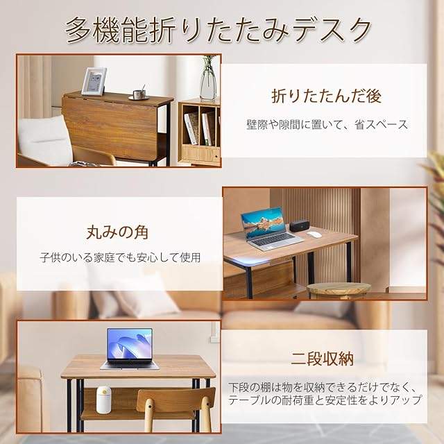 ✿【様々なシーンで使える】幅80×奥行58×高さ79cmのサイズは、勉強、オフィスワーク、日常のパソコンの使用にとても向いています。折りたたんでナイトテーブルとしても、空間が限られる部屋で食事テーブルとしても適用しています。