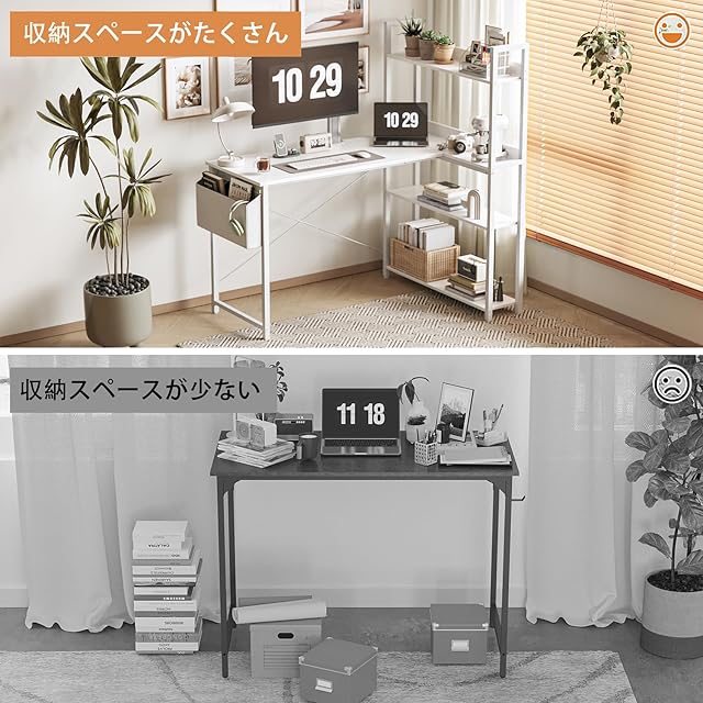 省スペース設計:このパソコンコーナーデスクは、狭いスペースにも収まるよう特別に設計されており、ホームオフィス、アパート、寮の部屋に最適です。L字型の形状により、コーナースペースを最大限に活用し、貴重な床面積を節約しながら十分な作業スペースを確保します。