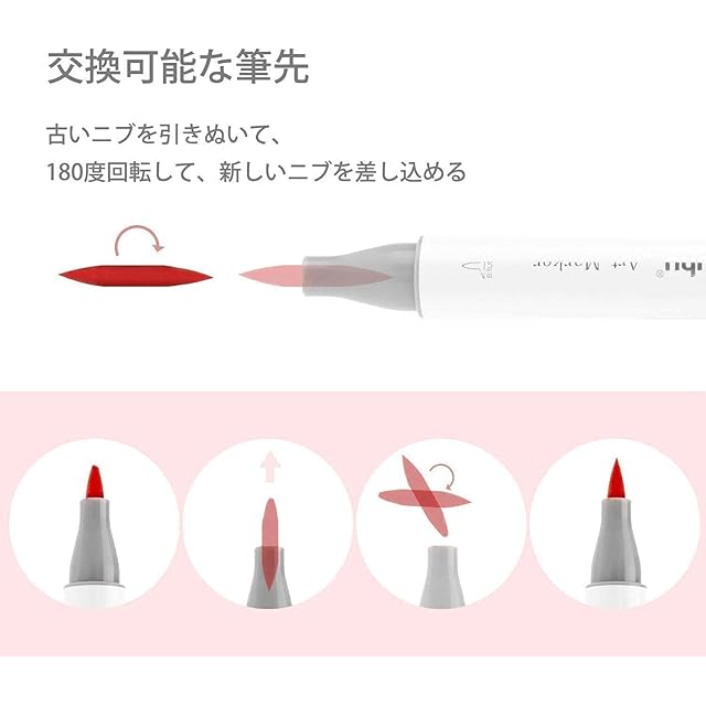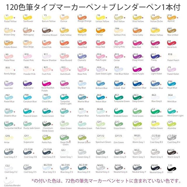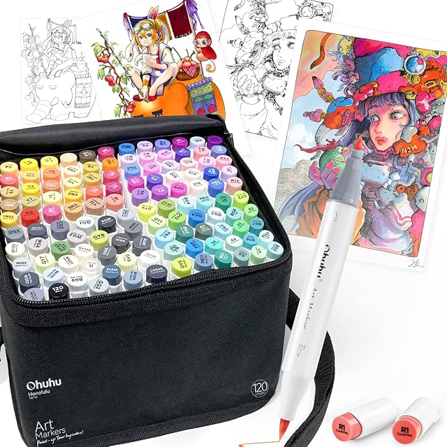 Ohuhu マーカーペン 筆タイプ 120色121本 プロ愛用 イラスト イラストマーカー 筆・細字 ブレンダーペン1本付き Honolulu Bシリーズ