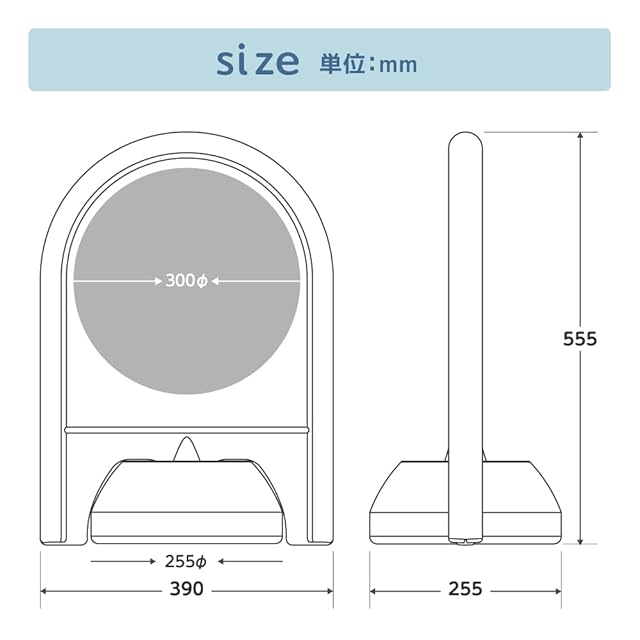 【本体色】ホワイト【サイズ】D255×W390×H555mm【有効画面寸法】295φ【重量】本体:1.17kg /満水時:3.9kg /満砂時:5.4kg