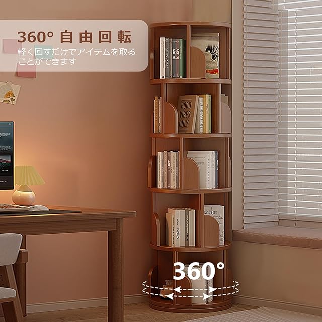 「360°回転」この回転式本棚は流線型デザインを採用し、スムーズな360°回転機能付きで、省スペースを実現。家庭やオフィスに最適で、ワンタッチで簡単に回転でき、本やインテリアを楽に取り出せます。狭いスペースにもぴったりです。