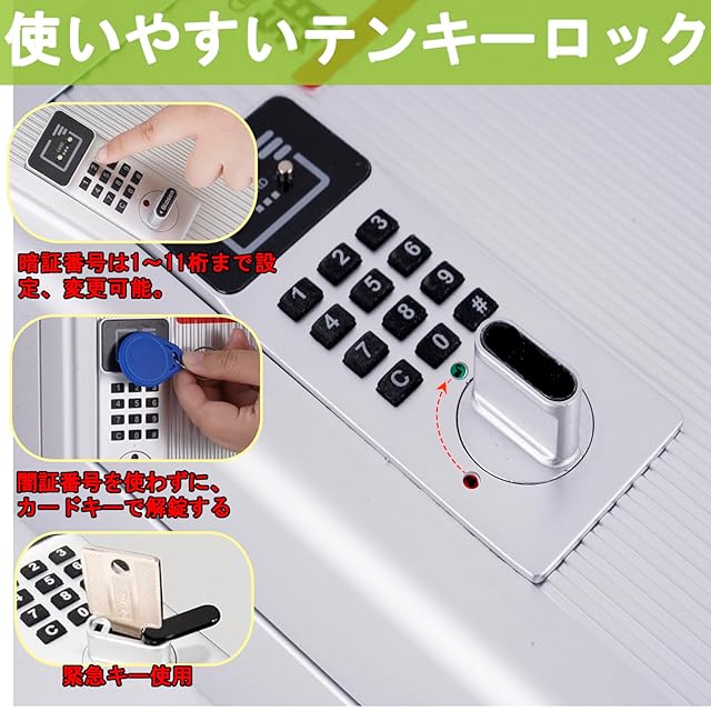 ■暗証番号と誘導カードの2つの方法で開錠でき、鍵、貴重品管理がより安全です。パスワードの設定と変更は簡単です。 カードは15個まで設定可能。 電池交換時、元のパスワードは保存されます