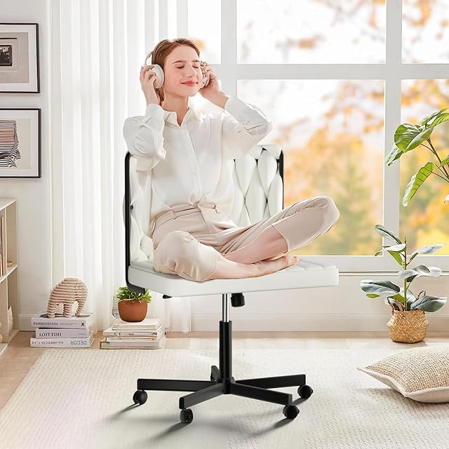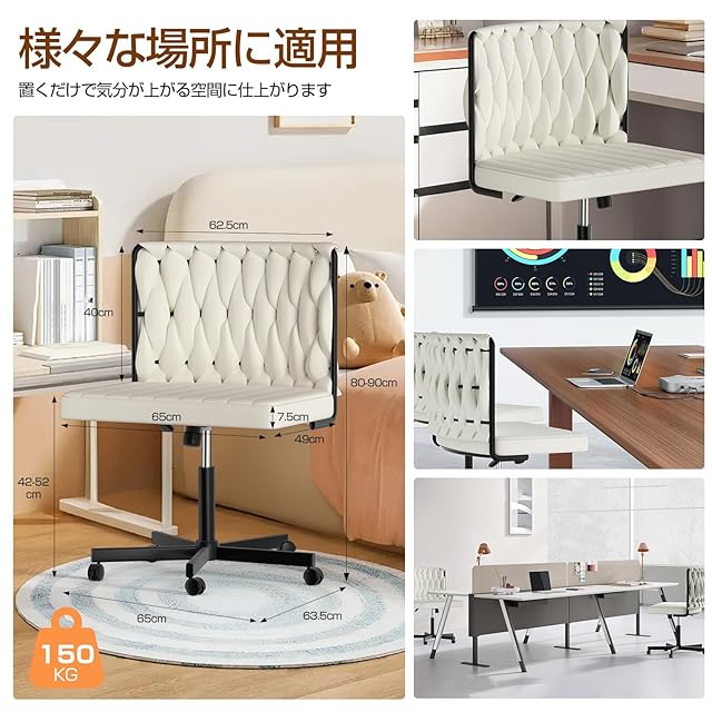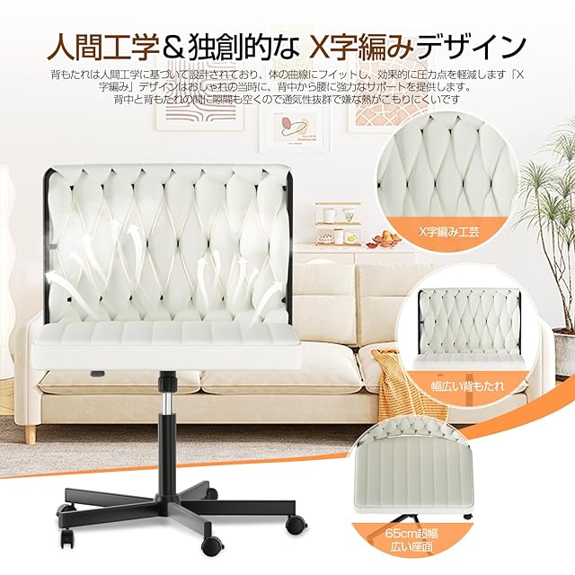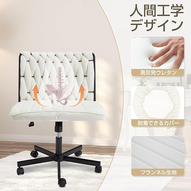 デスクチェア【11月新登場!あぐら& 幅広い座面&人間工学デザイン】オフィスチェア 疲れない椅子 ソファチェア 肘掛けなし パソコンチェア ワークチェア X字編み 90°~135°ロッキング 10cm昇降調節可能 360°回転 事務/学習/勉強など対応 フラノ (オフホワイト)