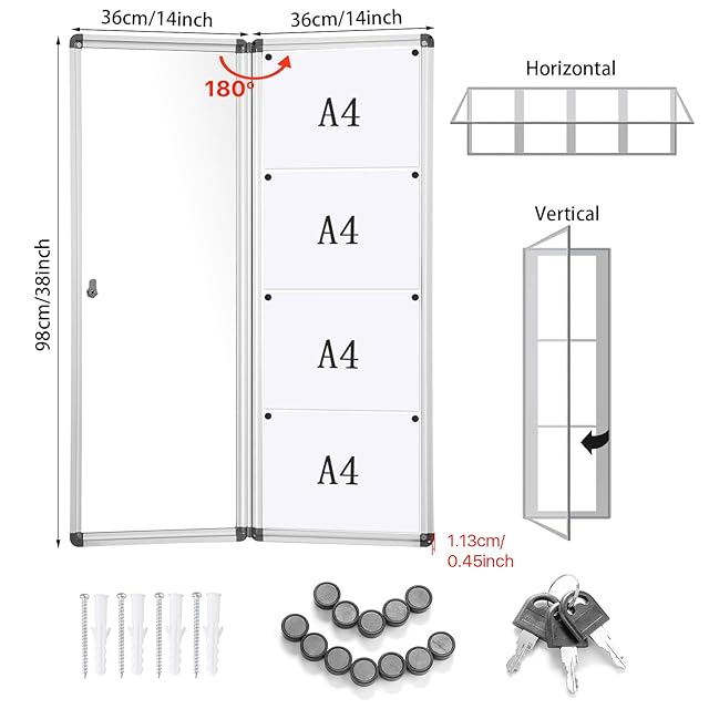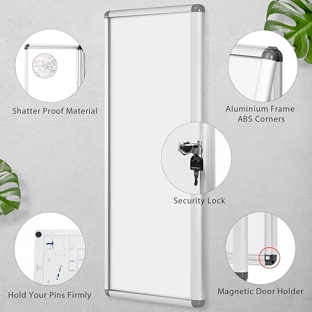ロック付きの保護設計: 掲示板 壁掛けの透明で飛散防止アクリル ドアの設計により、交通量の多い場所や公共の場所に貼り付けられたすべての紙を破れや盗難から確実に保護できます。 (鍵は3本付属します)