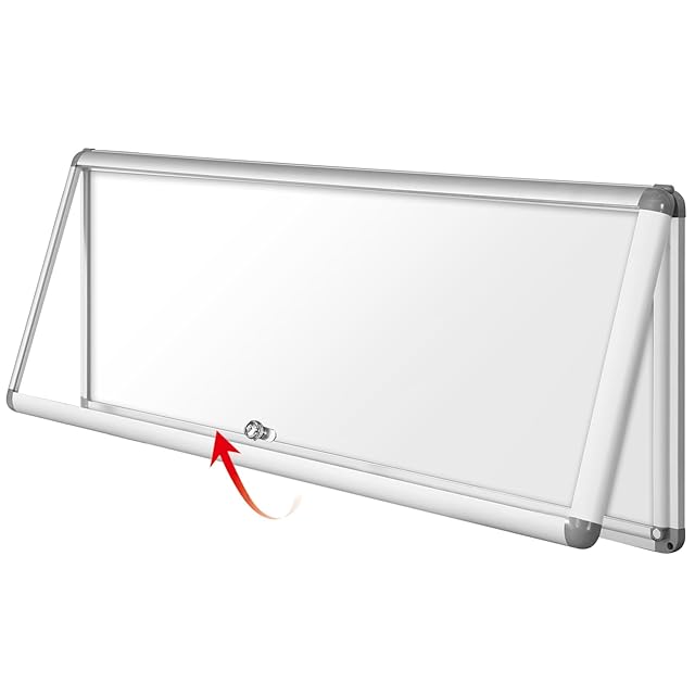 Swansea 屋外掲示板 マグネットボード壁付 扉式案内板連絡板 簡易ロック シルバーのアルミフレーム 学校 店舗用 カバー付 980mm×360mm
