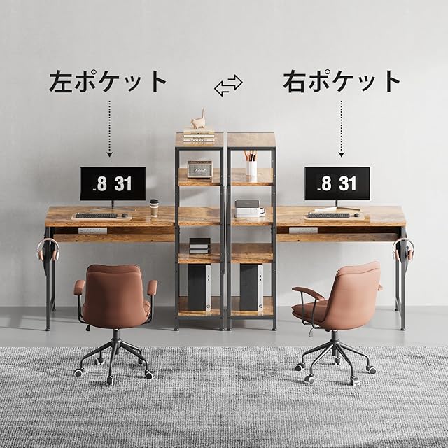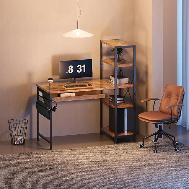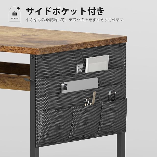YeTom 勉強机 パソコンデスク 机 ラック付きデスク 幅104cm×奥行48cm ワークデスク オフィスデスク 収納袋付き 学習机 左右入替可 可動式棚板 ビンテージ