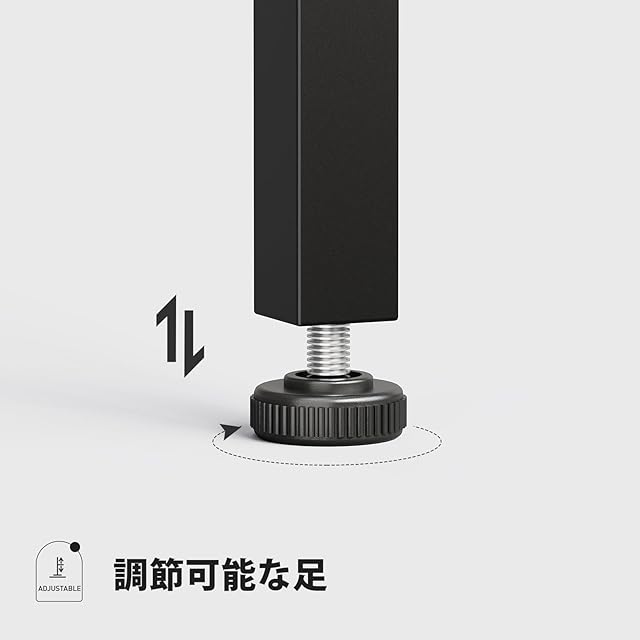 【安定性が高い】天板裏には補強用のリーンホースメント、横揺れ防止のクロスバー、脚先のアジャスター、強度と耐久性が高いスチールフレームが搭載しており、耐荷重が約80kgに達します。パソコンデスクの板の材料も防水と傷に強く、長く使うことができます。