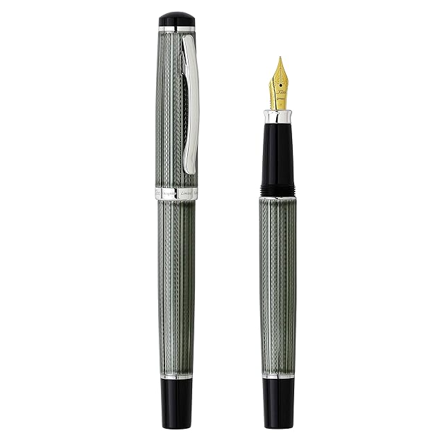 ファインサイズのペン先。 このシリーズは、細い側にあるペン先を備えています。 セットには、ペン、ギフトボックス、4つのカートリッジ、ピストンコンバーター、証明書、および3年間の保証が付属しています。