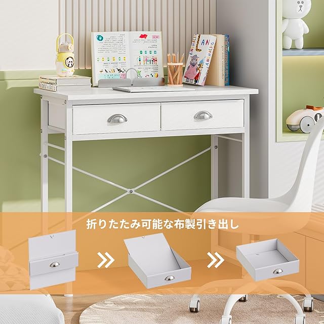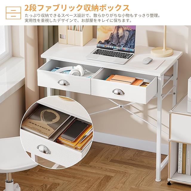 【充実した収納機能を備えたデスク】デスクには 2 つの広い引き出しが付いており、本や文房具などを分類して収納するのに十分なスペースを提供します。デスク周りを整然と保つことができます。