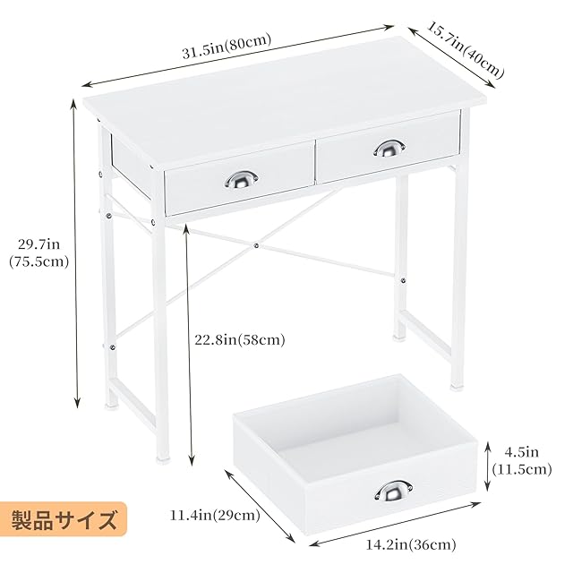 【商品仕様】天板:合成樹脂化粧繊維板(塩化ビニル) フレーム:スチール引き出し:オックスフォードクロス(粉体塗装)サイズ:幅80×奥行40×高さ75cm