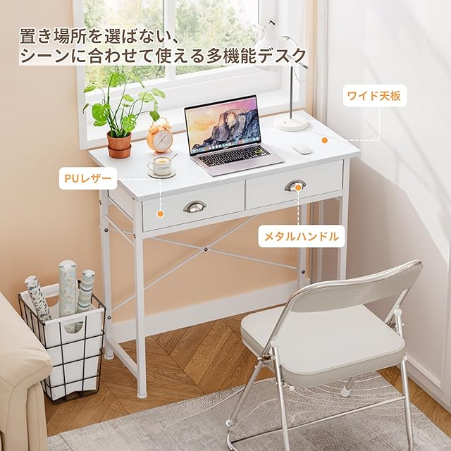 Fainyearnデスク 引き出し付き パソコンデスク pcデスク コンパク 机 省スペース パソコンテーブル オフィスデスク 幅80cm×奥行40cm ×75cm