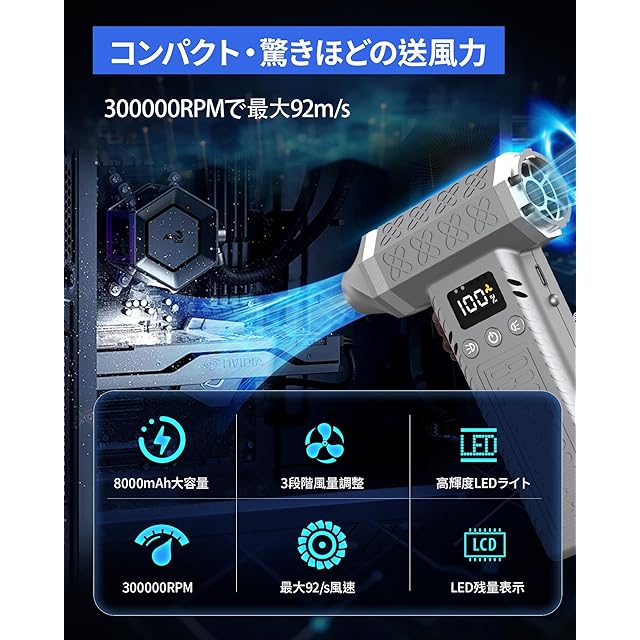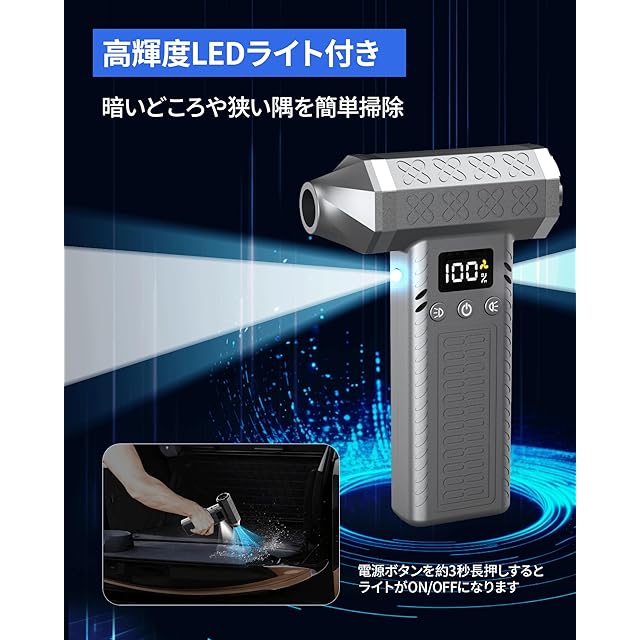 1台2役【300000rpm電動エアダスター・15000paミニ掃除機・3段風量調整・世界トップレベル】超强力 最大風速120m/s 小型 洗車ブロワー ハンディ掃除機 2個LEDライト付き LCDディスプレイ搭載 急速充電式 10000mAh 連続150分使用可能 超軽量 パソコン/キーボード/カメラ/洗車/車内/フィギュア/家具掃除