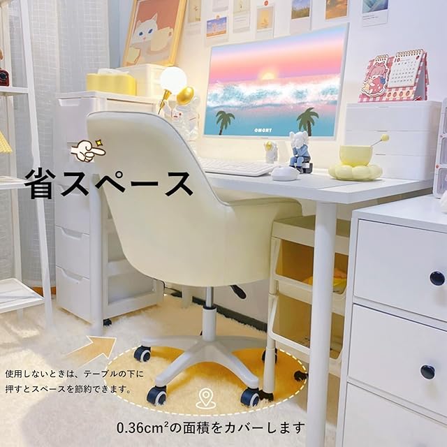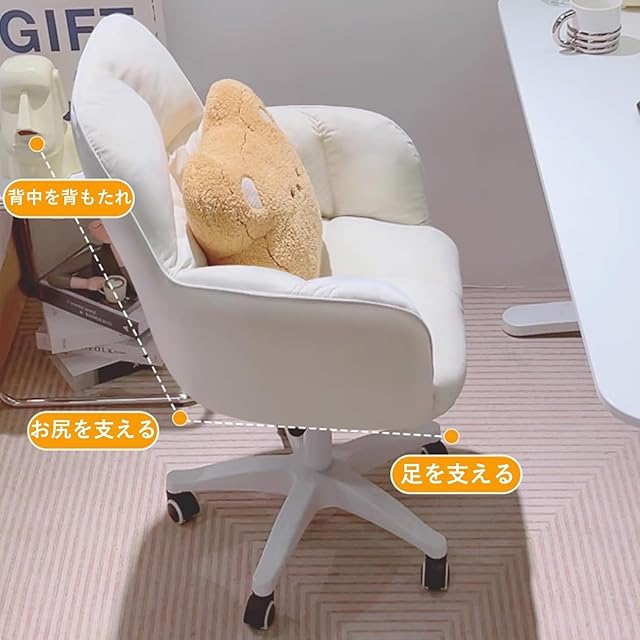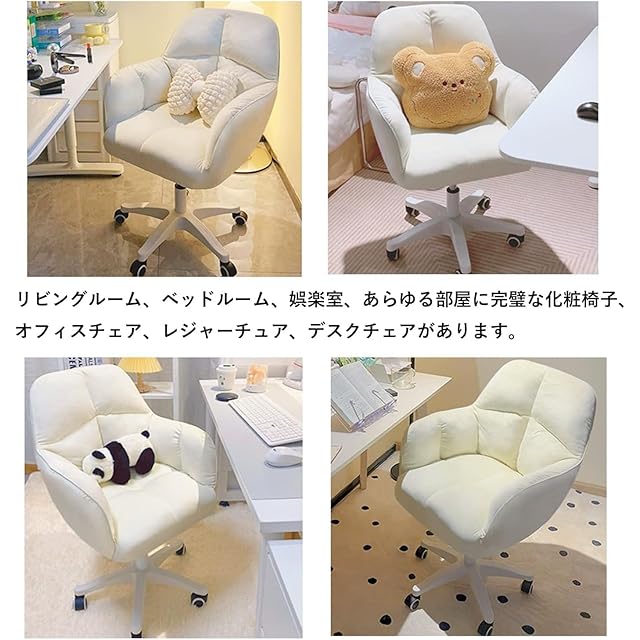 PQNLXLN デスクチェア リビングチェア 360°回転 座面昇降 イス 可愛い おしゃれ ふわふわ 化粧チェア 疲れない