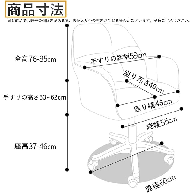 【ワンタッチ式昇降機能&360度回転】座面の下にあるレバーを引くと、昇降机能が働きます。簡単に操作可能です。調節範囲約8CM。最適な作業姿勢や視線まで調節でき、正しい姿勢を保ち続ける可能。オフィスチェアが360°スムーズに回転し、全方位を向く。長時間の作業をよりよく支えることができる。