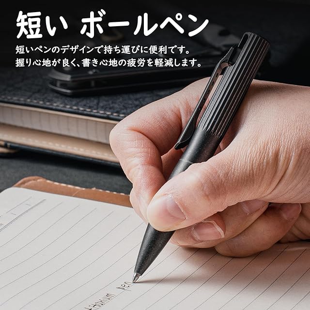 TIMULTI チタン ボールペン ボルトアクション 格納式 メタリックペン 短い 高級 ボールペン 詰め替えポケットペン 毎日の持ち運びに (チタン/ブラック)