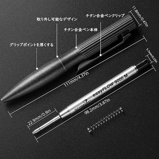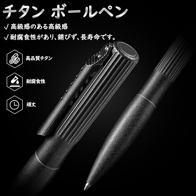 チタン ボールペン:このボールペンは高強度チタン合金素材で作られており、錆びず、過酷な環境や偶発的な落下にも耐えられるほど耐久性があります。