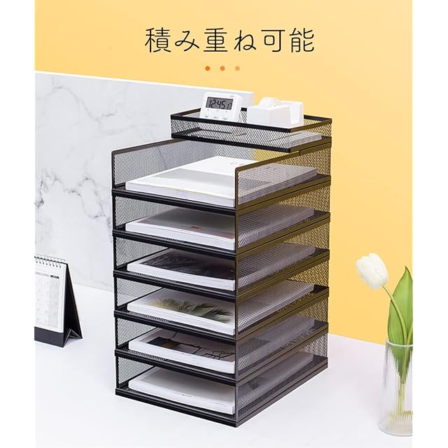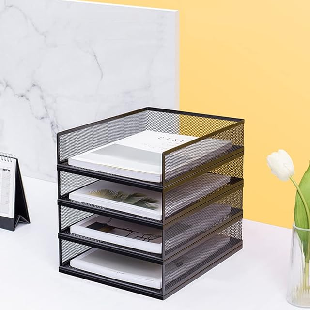 A3 卓上収納ラック メッシュ 金属 書類トレー メタル 横型 縦型 レターケースa3書類トレー ファイルラック3段/4段/5/段6段 書類棚 新聞/雑誌/A4ファイル/フォルダー/書類入れ 机上用品 整理 大容量 オフィス 寝室 リビング収納 (A3縦型レターケース4個,ブラック)