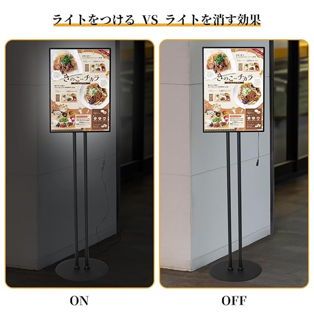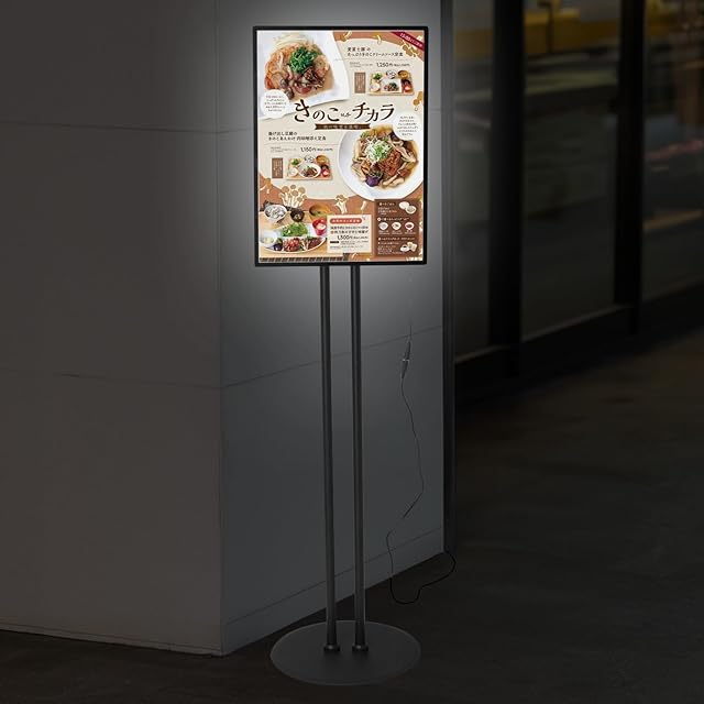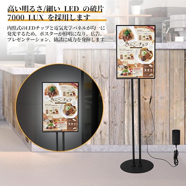 店舗看板の改善角度と高さの調整可能:案内板のA3メッセージフレームは任意の角度、高さは89 cmから149 cmの間で調整できます。フレームは整合性と強度が高い高品質のアルミ合金を採用し、軽量で便利です。パネルは傷に強い強化ガラスを採用し、変色しにくく、透明感が持続します。導光板を効果的に使用することで、以前のライトボックスより70 %以上のエネルギーを節約し、省エネと環境保護の需要に応えます
