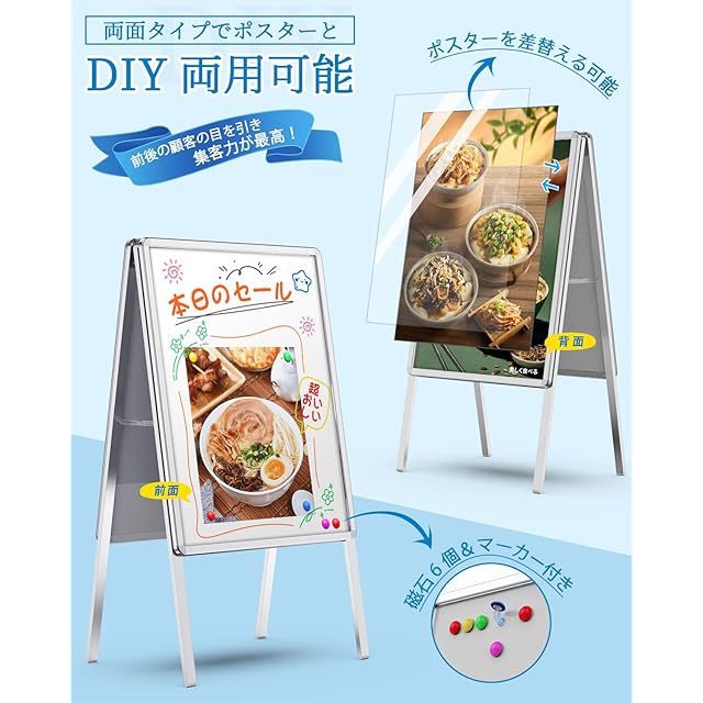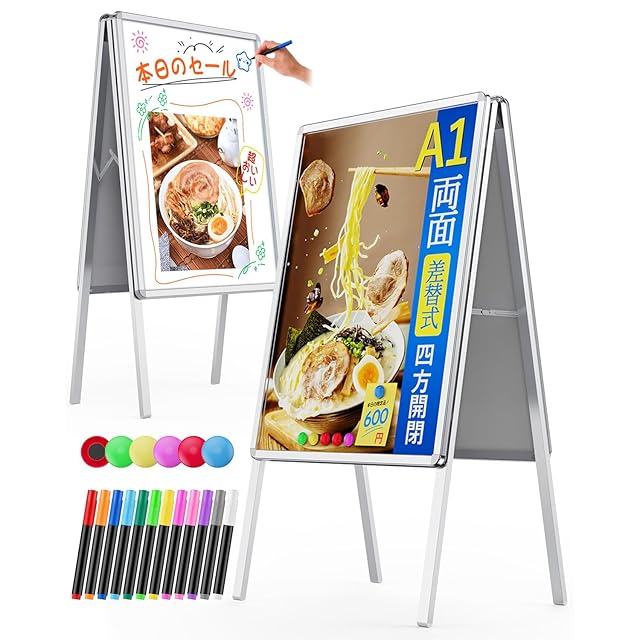 看板 立て看板 12色セット蛍光ペン 両面 アルミ製 屋外 スタンド看板 パネルスタンド 店舗用看板 ポスターフレームスタンド 案内 転倒防止ボード 折りたたみ式 屋内外対応 イベント受付看板