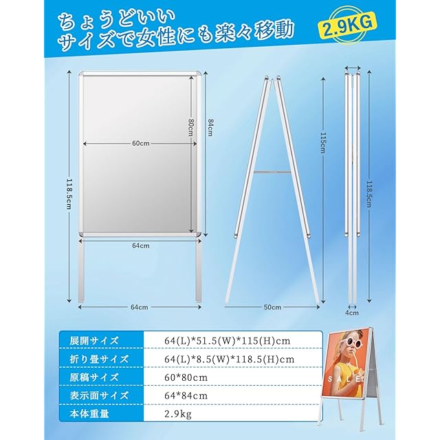 折りたたみ式設計で、組み立てる必要がなく、開くだけで使用できます。使用しない場合は、折りたたむことができ、収納や輸送に便利です。(お知らせ:悪天候の場合、看板を室内展示に移してください。)